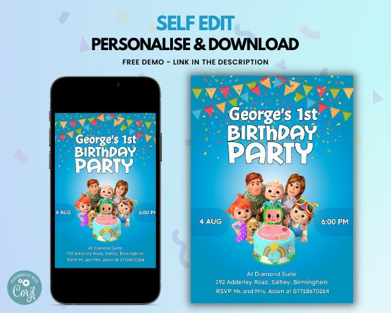 Editable Cocomelon Birthday Invitation Editable Template Invitation Digital Ebay